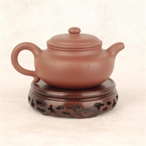 传统器形,仿古壶特点是把握到位,讲究精气神,精选原矿降坡泥,天然取材,造型精美,泥质圆润,做工细腻。捧在手中把玩,线条流畅,古韵味十足。是品普洱,花茶等的上乘选择。2010年10月(仿古)壶获得第十二届中国(国家级)工艺美术大师精品博览会创新艺术金奖。