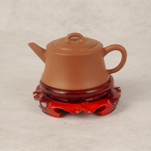 也叫曼生壶,以半瓢为器身,流短而直,把成环形,盖上设弧钮,把梢印“彭年”,底印“阿曼陀室”。壶身铭:“曼公督造茗壶第四千六百十四。为泉清玩。”造型设计简洁。
